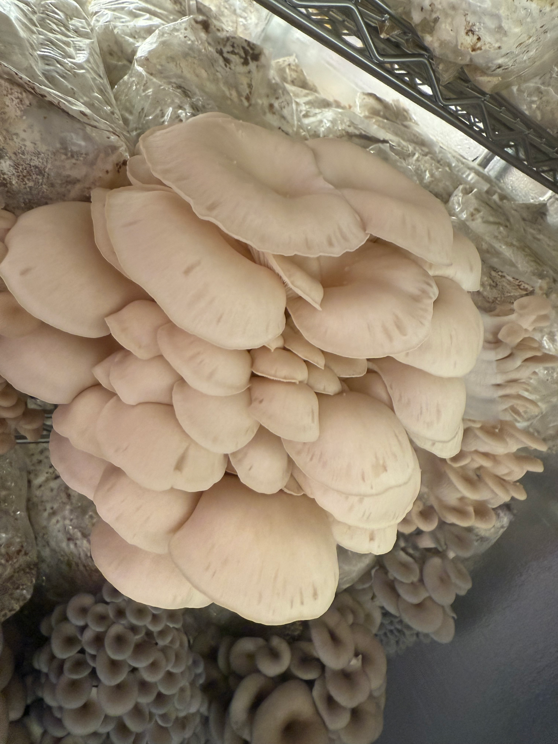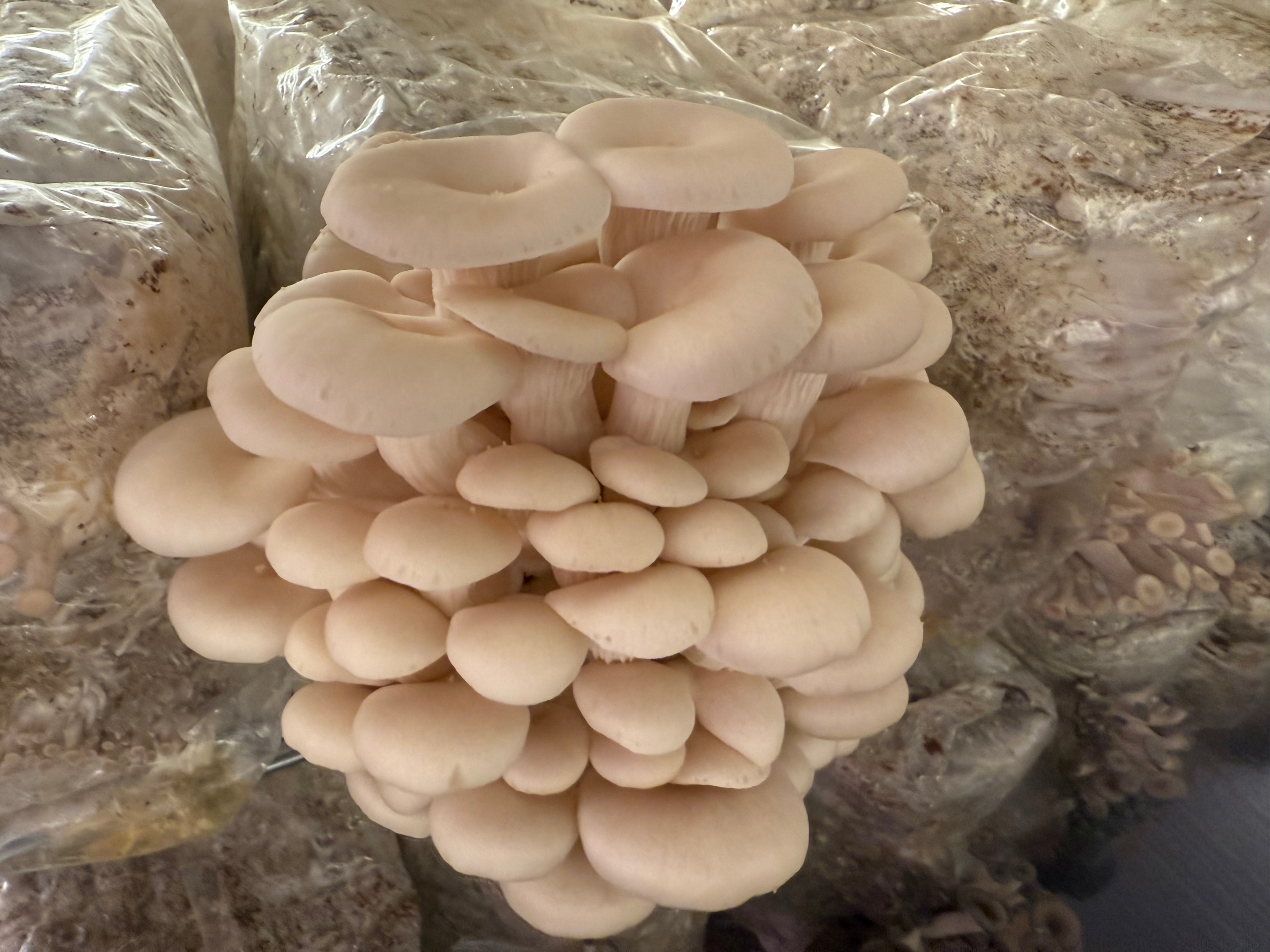 Silver Lake Mushrooms grows Elm Oysters on hardwood substrates—such as straw, sawdust, or logs—under carefully controlled indoor conditions. They tolerate elevated CO₂ levels, making them hardy and reliable in varied environments. We maintain: